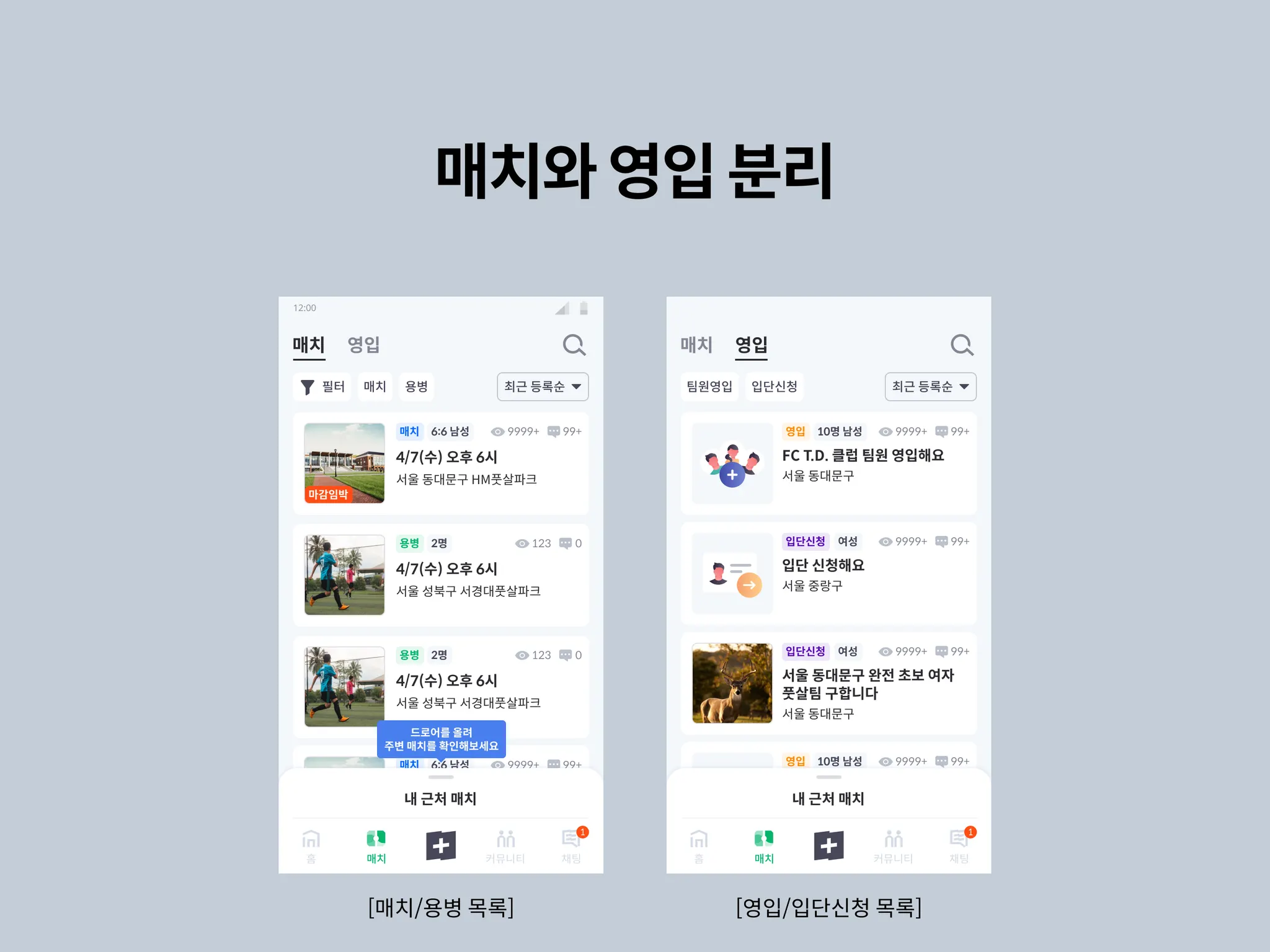 매치와 영입 목록을 분리하여 메뉴의 가독성을 올렸습니다.