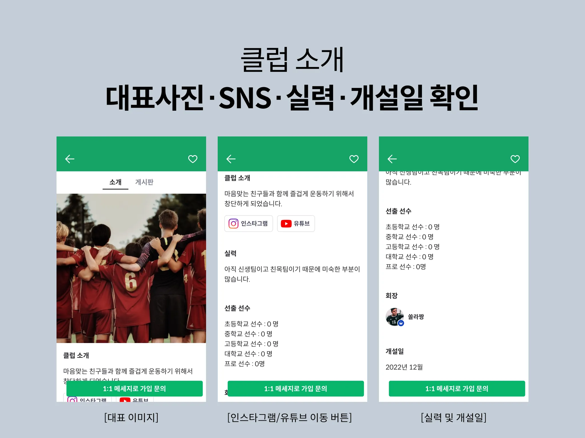 1. 클럽 소개 화면 추가 : 클럽 대표사진/SNS/실력/개설일