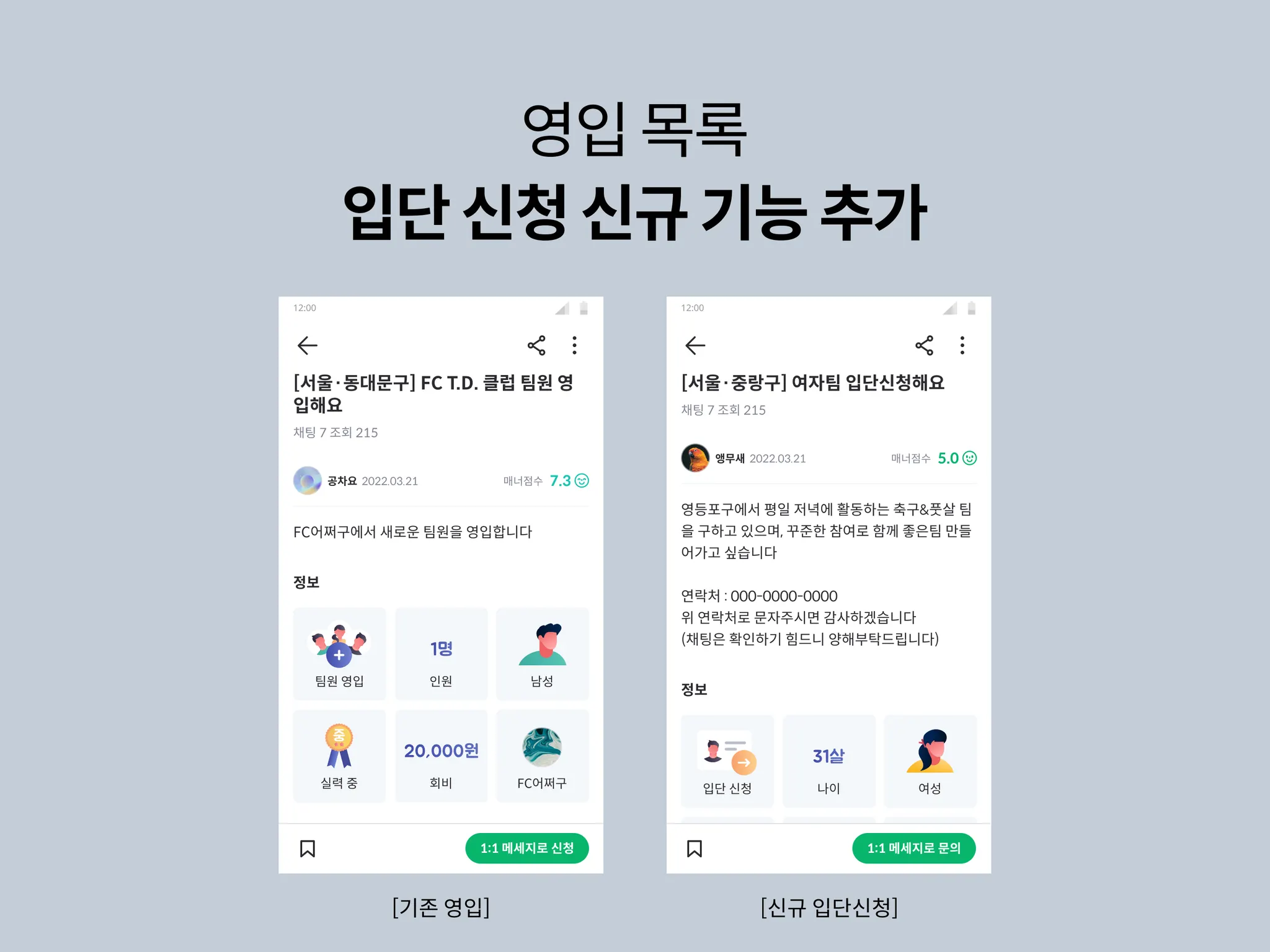 “클럽 정보를 자세히 볼 수 있고 영입과 입단 신청도 업데이트 되었어요”
