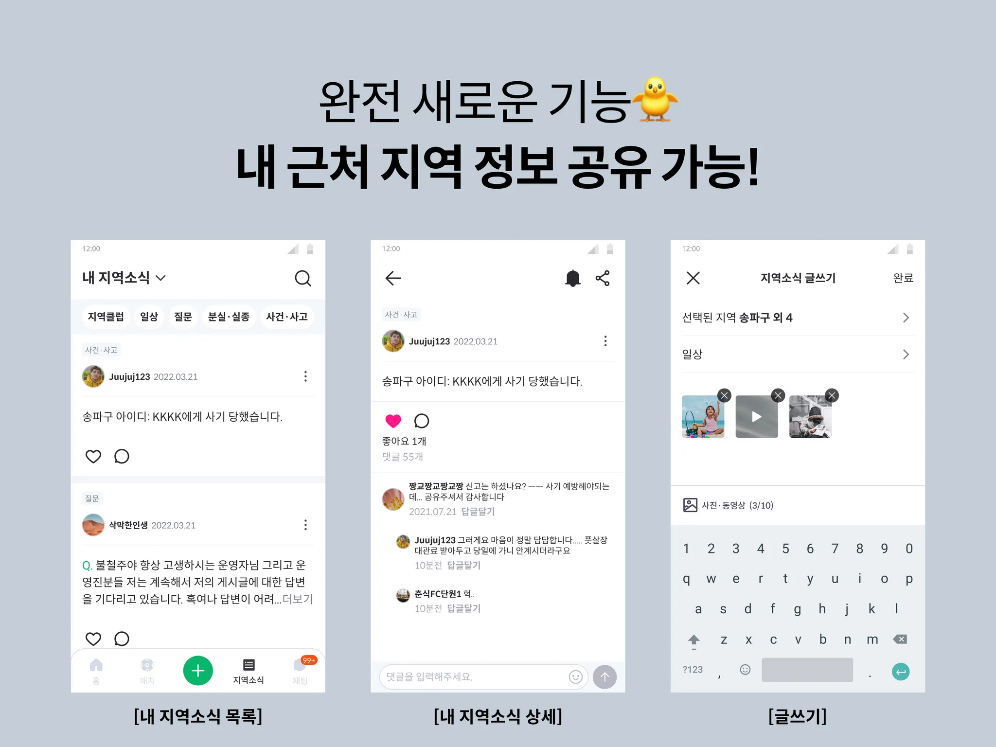 지역 사람들과 피드를 공유 받고 공유하면서 온라인상에서 스포츠에 관련된 지역 정보 공유 가능