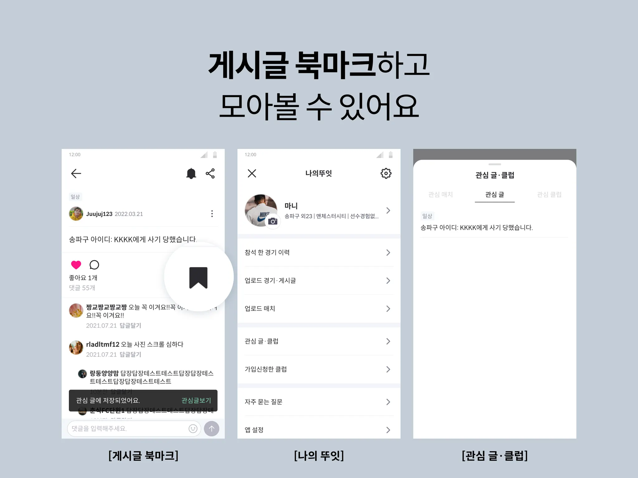 주요 정보를 모아볼 수 있도록 커뮤니티 글도 북마크 기능을 추가하였어요.