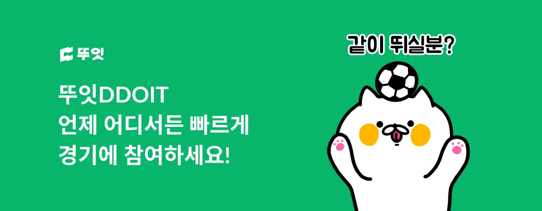 뚜잇은 주변의 선수들을 연결해서 빠르게 축구·풋살을 매칭하기 위해 노력하고 있어요. 좋은 경기를 만들기 위해 매너를 지키며, 서로 신뢰할 수 있도록 만들어가는 것이 뚜잇의 목표입니다.