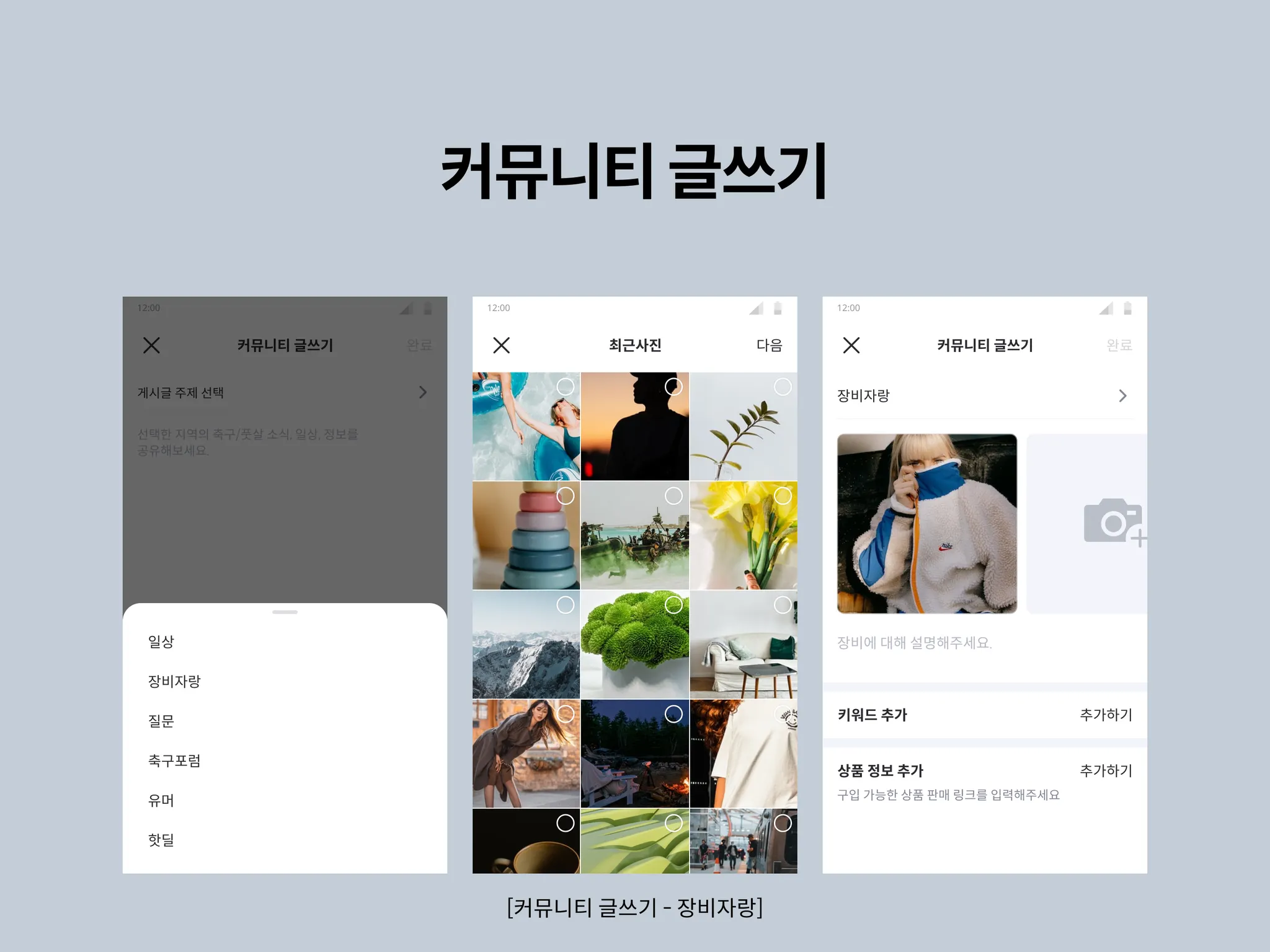 장비자랑 선택 후 사진 선택은 필수입니다! (키워드 추가와 상품 정보 추가도 필수 사항이니 참고해주세요)