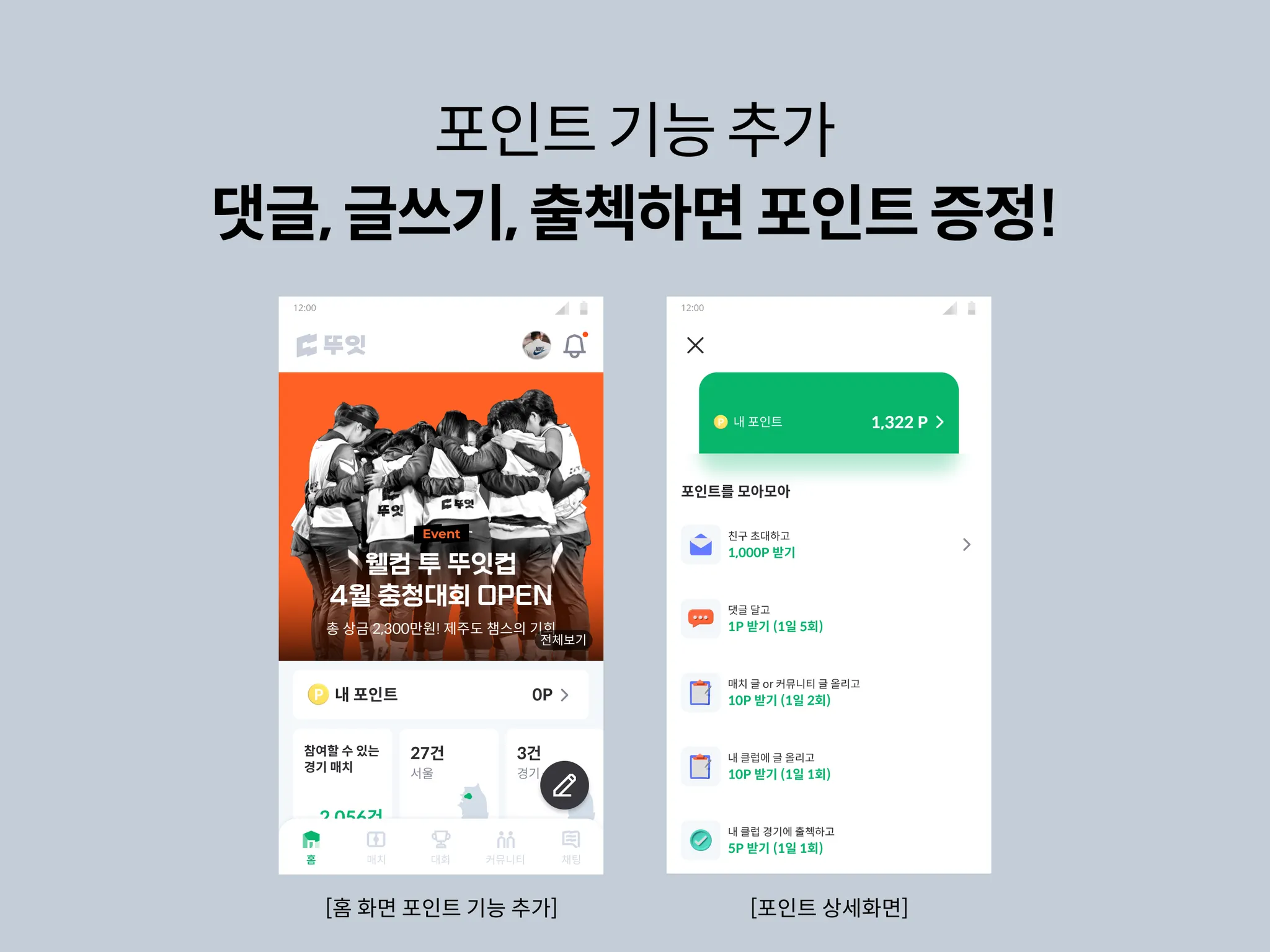 1. 뚜잇 포인트 기능 추가 2. 커뮤니티 장비자랑 기능 추가