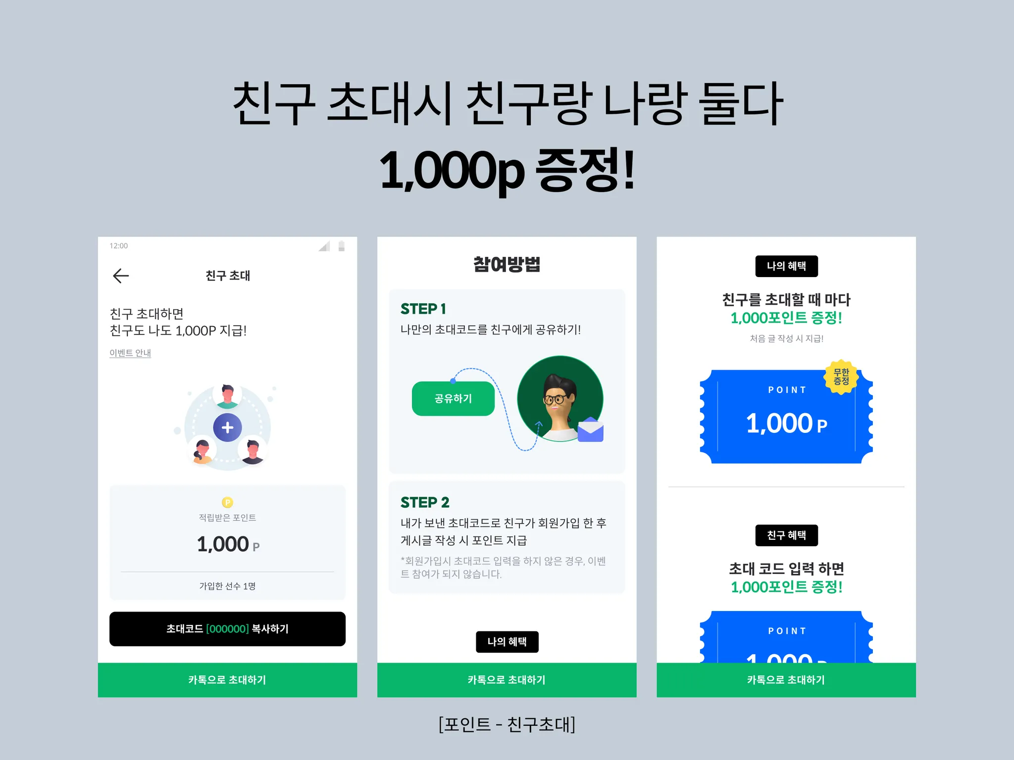 특히 주변에 아직 뚜잇에 가입하지 않은 친구가 있다면 내 초대 코드를 복사해서 친구에게 가입을 유도해보세요! 친구랑 나랑 둘다 1000P씩 증정해드리고 있습니다. (친구가 게시글 1회 작성 완료시)